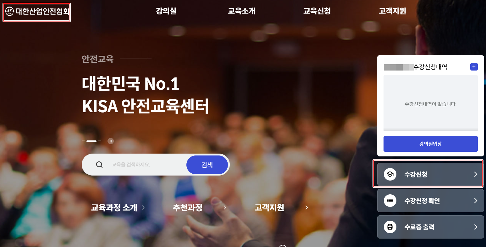 1. 대한산업안전협회 홈페이지 접속 -> 로그인 -> 수강신청