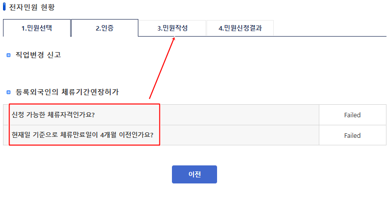 저희 외국인들은 아직 해당사항이 없어, 위에 두 가지 질문에서 실패라고 답변을 받았어요.