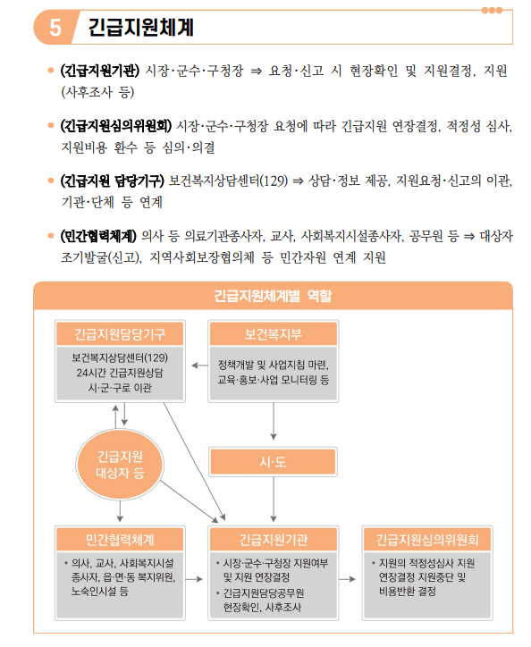- 위기상황에 처한 사람에게 일시적으로 신속하게 지원