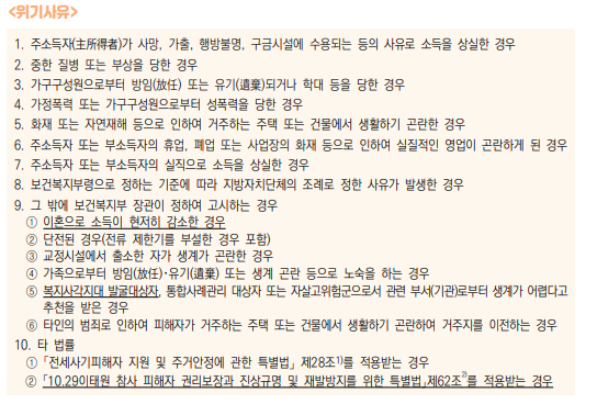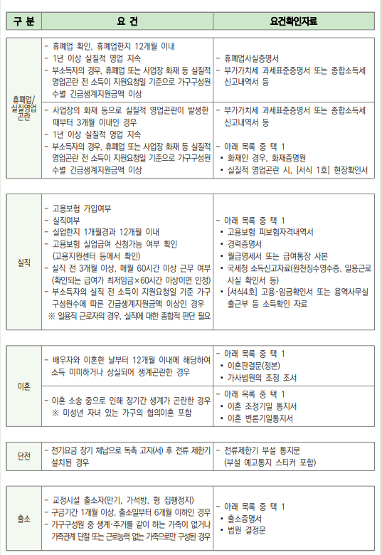 => 일정 소득, 재산 기준을 충족하고 위기사유가 있는 경우에만 받을 수 있습니다.