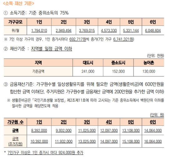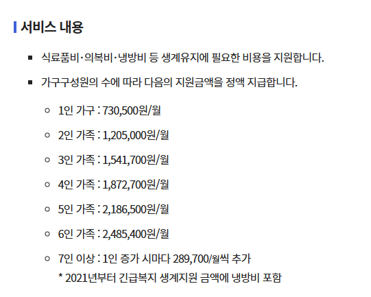 * 생계비 외에도 의료비, 주거비, 교육비 등도 추가 지원 가능