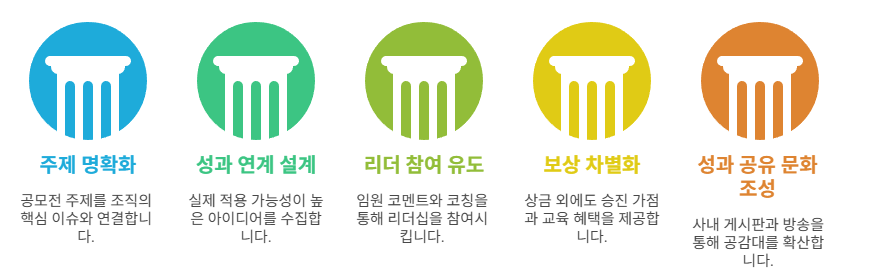보통 혁신 아이디어 발굴, 조직문화 강화, 직원 참여 확대를 목적으로 운영됩니다.