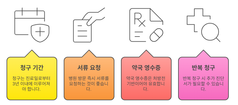 => 반복 청구 시 보험사에서 추가 서류를 요구할 수 있으므로, 소명자료를 준비해 두는 것이 좋습니다.