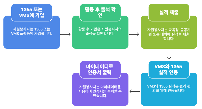 1. 1365 자원봉사포털 → 전국 자원봉사 활동 검색, 신청, 실적 관리 가능