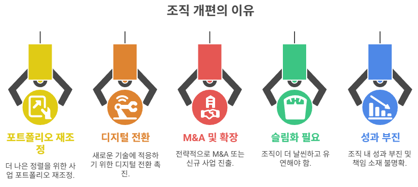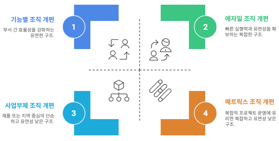 조직개편은 단순한 조직도 수정이 아니라 기업의 전략 방향, 시장 변화, 내부 효율성에 따라 구조를 전환하는 중요한 경영 결정입니다.