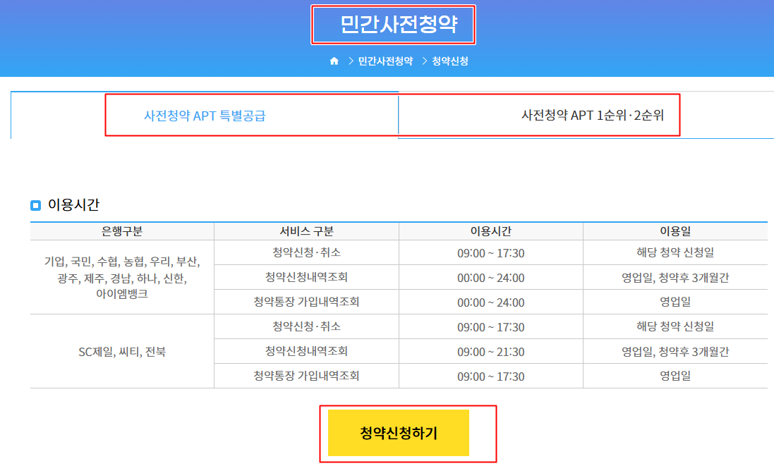 4. 특별공급의 경우 : 신혼부부, 다자녀, 생애최초 등 각기 기준 상이