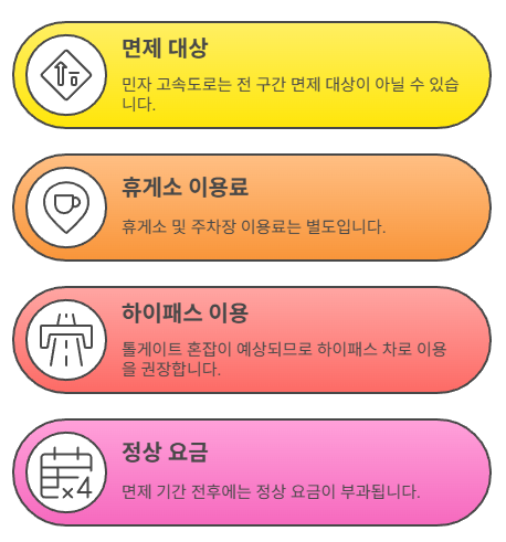 => 도로공사 관리 구간만 면제 대상이며, 일부 유료 교량·터널은 제외될 수 있습니다.