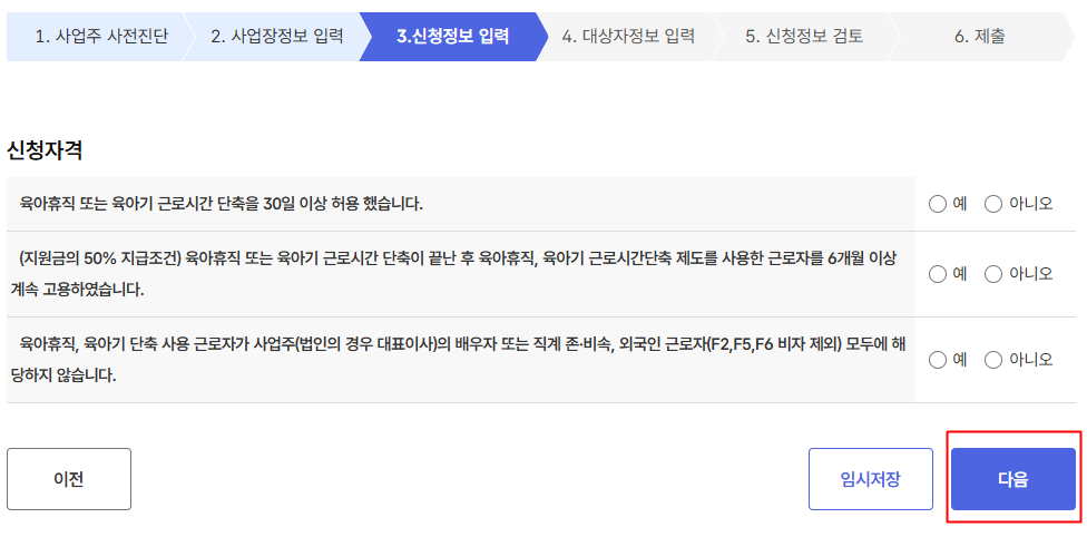 근로자 정보와 자녀 정보, 기간까지 입력해 주시면 됩니다!