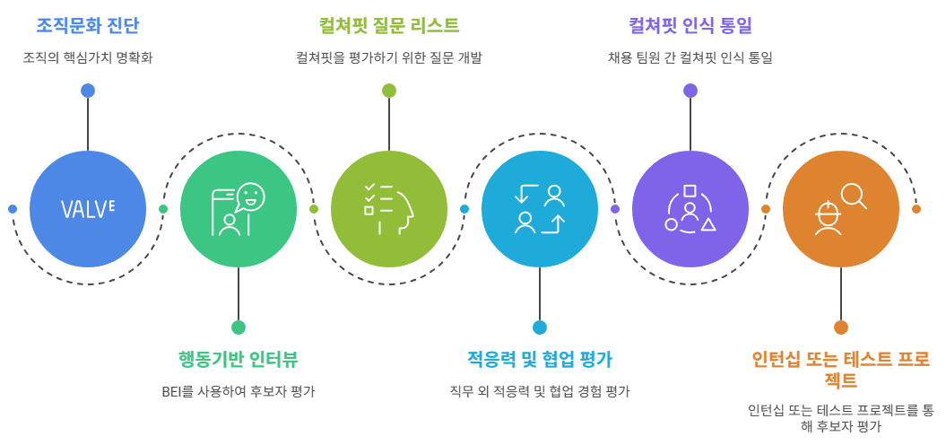 => 조직문화 진단 툴, 행동기반 인터뷰, 가치관 매칭 설문 등을 활용해 정량·정성 평가가 가능합니다.