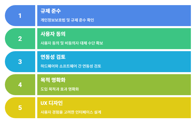 => 인프라 구축, 개인정보보호 정책 정비, 사용자 동의 프로세스 마련이 필요합니다.