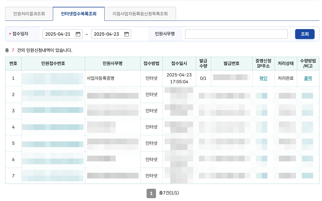 4. 접수목록 조회 -> 출력