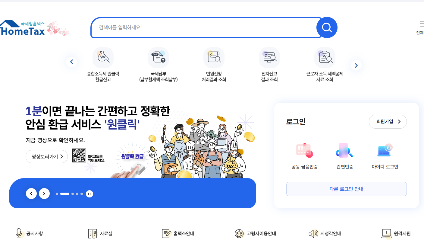 1. 국세청 홈택스(모바일은 손택스) 로그인