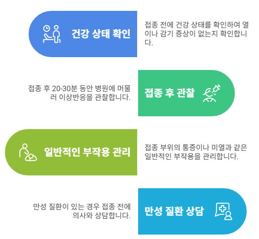 => 접종 부위 통증·미열은 흔하며, 심한 이상반응 시 즉시 병원 진료를 받으셔야 합니다.