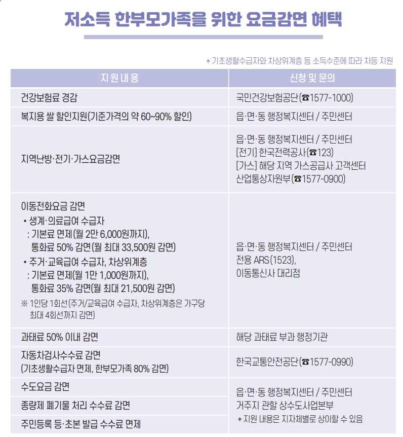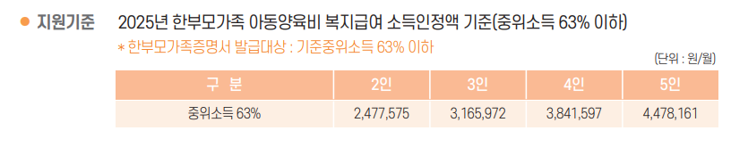 2025년 한부모가정 주요 지원금