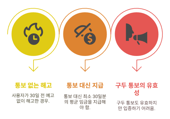 1. 정당한 해고사유 및 30일 예고 또는 수당 지급 필요