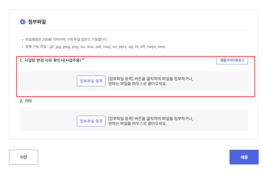 1-4. 사업장 변경 사유 확인서(사업주용) 첨부파일 등록하여 제출