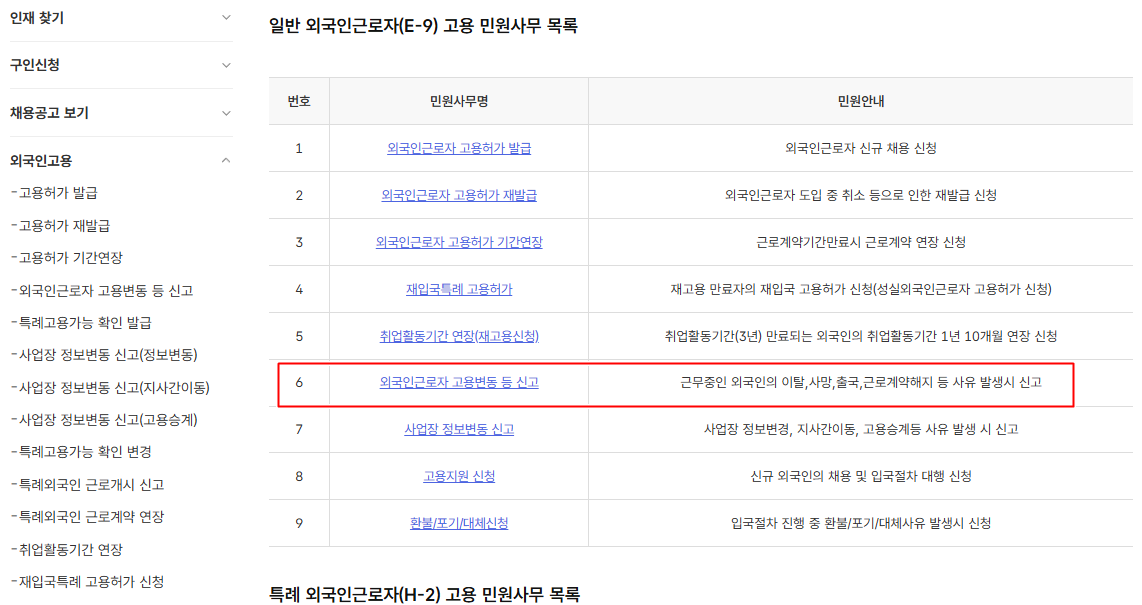 이후엔 출입국사무소에 고용, 연수 외국인 변동사유 발생 신고서를 접수해 줍니다.